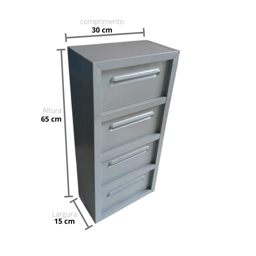Caixa de correio muro condomínio 4 módulos, em chapa de aço pintada, retirada da carta pela traseira, ficando assim a frente voltada para a parte externa da residência, e ideal para colocar cadeado.