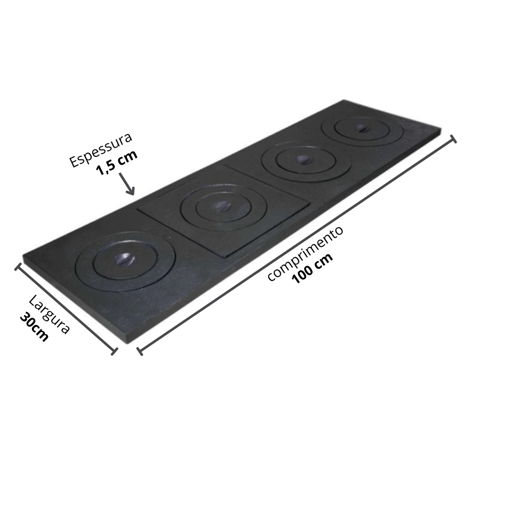 ESPECIFICAÇÃO DO PRODUTO CHAPA PARA FOGÃO A LENHA MULTIUSO 4 FUROS REDUÇÃO COM TAMPA E BIFEIRA